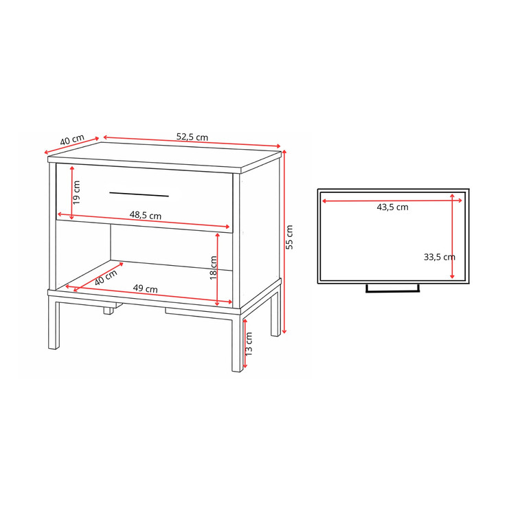 Praktický a elegantní noční stolek na nožičkách je ideálním doplňkem do každé ložnice. Poskytuje dostatek prostoru pro odložení knihy, telefonu nebo lampičky, zatímco úložný prostor pomůže udržet vše přehledně uspořádané. Díky vyvýšeným nožičkám působí stolek lehce a vzdušně, zároveň usnadňuje úklid pod ním. Jednoduchý design se snadno kombinuje s různými styly interiéru a přináší pohodlí do každodenního používání.