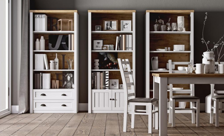 V posledních letech je jídelna a kuchyně v bílém pojetí velmi žádaná. Na vrcholu byla už i před mnoha lety, ale lidé ji na několik let nahradili skříňkami hnědými, nebo barevnými, ovšem teď se k bílé vrací. Důvod je prostý. Bílá se výborně kombinuje, také s ní působí prostor větším dojmem, ani vysoké skříňky sahající až ke stropu nedělají kuchyni stísněnou nebo přeplněnou.