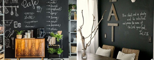 Pokud tedy chcete např. v kuchyni psát na zeď nákupní seznam, postačí vám obdélník. V obýváku pro změnu vypadají dobře napsané citáty, vhodné je tedy na zeď nakreslít různě velké čtverce, do kterých můžete citáty libovolně obměňovat. V dětském pokoji zase oceníte, že děti při kreslení na zeď natrvalo nepoškodí malbu, protože křídu jednoduše smyjete a tedy zde můžete volit i větší plochy pro výmalbu.