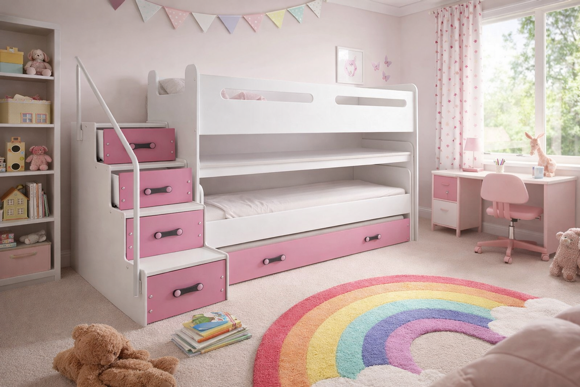 Zařídit dětský pokoj tak, aby byl krásný, bezpečný a zároveň plně funkční, může být výzva. Správně zvolený dětský nábytek je přitom jedním z nejdůležitějších kroků — pomáhá podpořit zdravý spánek, usnadňuje úklid i domácí úkoly a přitom vytváří prostředí, kde se dítě skutečně cítí dobře. V naší nabídce dětského nábytku najdete širokou škálu produktů od postelí, přes komody a psací stoly až po skříně a detaily, které udělají pokojíček útulným.