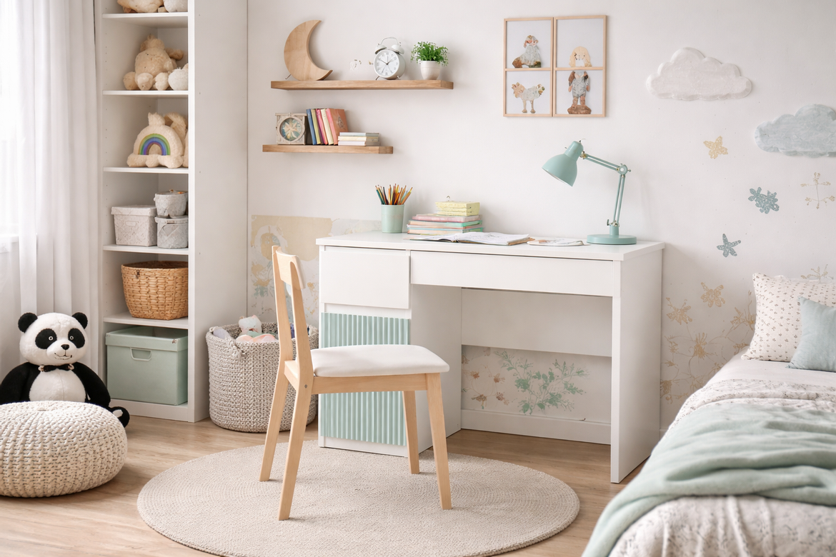 ⭐ Zvolte multifunkční kousky: nábytek s úložným prostorem pod postelí nebo nadčasový psací stůl pomůže v budoucnu ušetřit místo i peníze.