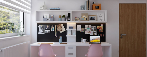 Pokud máte menší dětský pokoj, nebo pracovnu, můžete vsadit na bílé psací stoly. Díky nim nejenže se prostor opticky zvětší, ale také projasní. Pokud vám přijde, že by byl bílý stůl příliš světlý, můžete najít i modely, které kombinují bílou a přírodní barvu v jednom kusu nábytku. Bílé jsou např. jen dvířka skříňky či šuplíky.