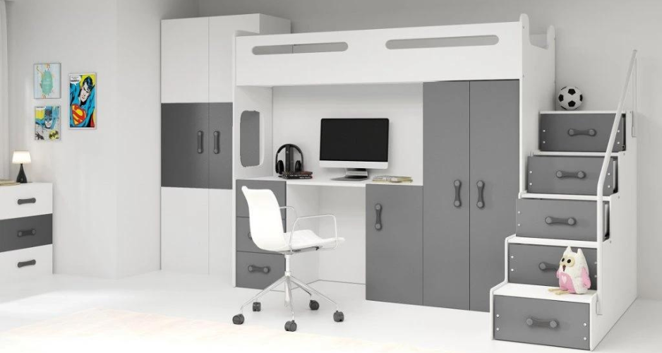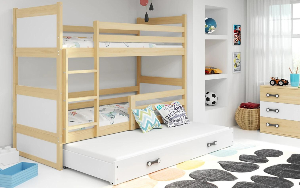 K dostání jsou naprosto jednoduché patrové postele, které jsou opatřeny zábranami proti přepadení děti z lůžek, když v noci spí, a po straně je žebřík vedoucí nahoru. Postel se dá umístit do kouta místnosti, k boku šatní skříně, také vedle pracovního stolu, ale když mají děti u hlavy zeď nebo bok vysoké skříně, mohou se v postelích cítit lépe, mít více soukromí, než když postel stojí „jen“ zády u stěny, ale u hlavy ani nohou děti žádný nábytek nemají.