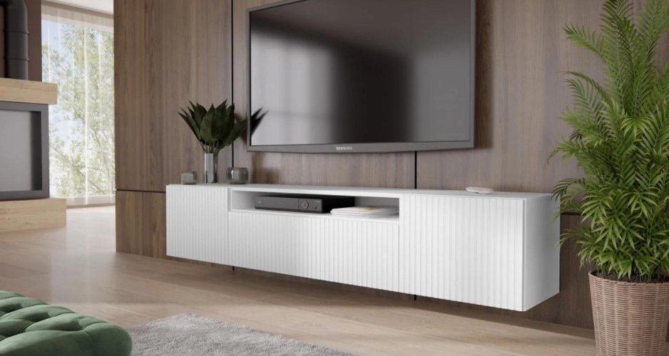 Máte rádi bílý nábytek pro jeho eleganci, výbornou kombinovatelnost se vším ostatním, nebo proto, že vaše malé prostory doma opticky zvětšuje a prosvětluje? Pak se vám budou líbit bílé televizní stolky, které jsou v nabídce s prosklením i bez něj, se šuplíky i skříňkami po stranách. Uprostřed bývají zpravidla otevřené police, které jsou praktické – umožní ovládat elektroniku, aniž byste museli otvírat dvířka.