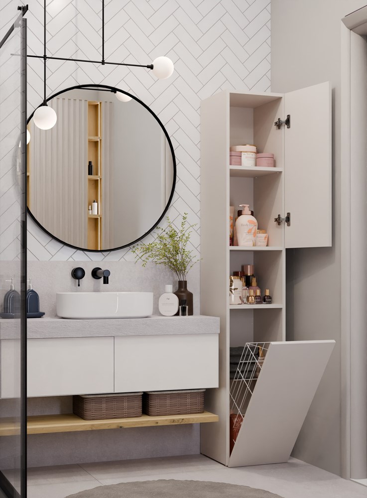 pozicích, bychom měli namontovat, nebo naopak vynechat vrchní skříňky. I zrcadla do koupelny je