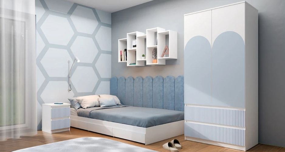 ale může být v barvách. Příkladem je šatní skříň Malva v modrém či zeleném provedení v kombinaci s bílou. Ve spodní části má dva šuplíky, do nichž děti mohou „naházet“ vše, co není potřeba skládat. Třeba ponožky, spodní prádlo, ale také čepice či oblíbené plyšáky, když je místo navíc.