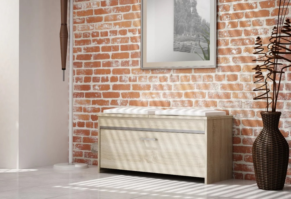 Takový botník se sedátkem může být i součástí celé předsíňové stěny. Záleží na tom, zde zařizujete předsíň kompletně celou, nebo chcete jen některé kusy nábytku.