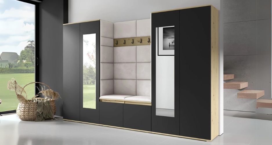 První v pořadí jsou předsíňové stěny, které na nás působí hned poté, co se vrátíme domů z práce, školy či výletu. V předsíni by mělo být uklizeno, čisto a dobré je, když je v malém prostoru světlý typ nábytku. Anebo světlá výmalba a tmavší nábytek. Díky sestavě může předsíň a šatna obsahovat skříňku, botník, šatní skříň, zrcadlo i věšáky a polici. V případě, že je vás doma hodně je dobré mít k dispozici vysoký úzký botník, do něhož si mohou odložit boty všichni, stejně jako prostornější šatní skříň.