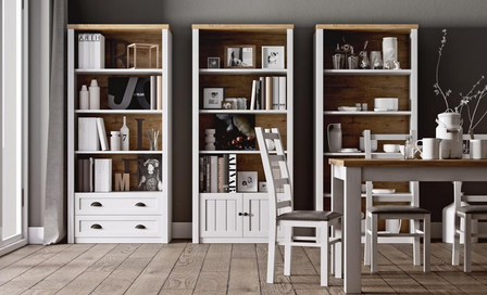 Jestliže máte kuchyni prostornou, obohaťte ji i dalším nábytkem, díky němuž budete moci uložit více věcí, nebo si je vystavit. Hezky v kuchyni mohou vypadat police a regály, stačí sladit je s kuchyňskou linkou nebo jídelním stolem. Oblíbené jsou v kuchyních i vitríny, které jsou jako stvořené pro odložení čajových servisů, talířů nebo třeba konvic na čaj a váz.
