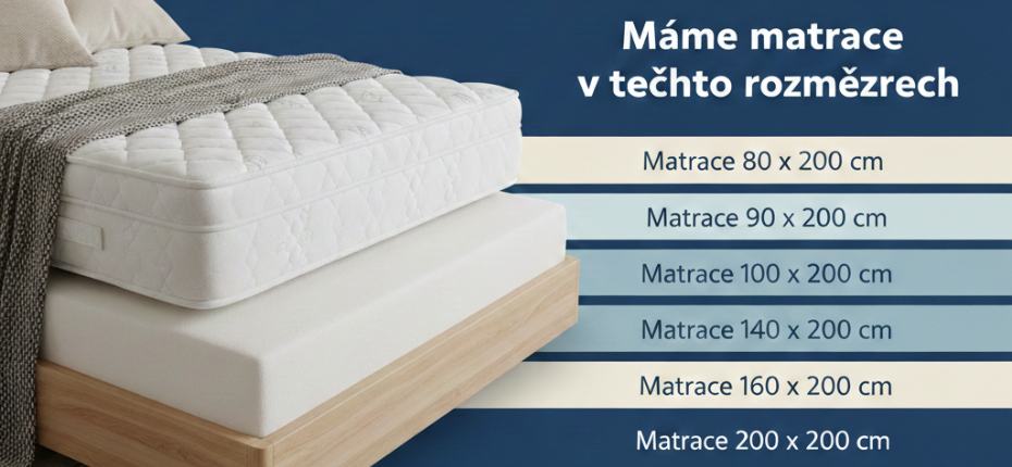 Věříme, že každá postel si zaslouží přesně padnoucí matraci. Proto si u nás můžete vybírat matrace podle konkrétních rozměrů — od jednolůžkových až po velikosti pro manželské postele. Velký výběr rozměrů zaručuje, že i atypické nebo netradiční postele budou mít svou perfektní matraci.