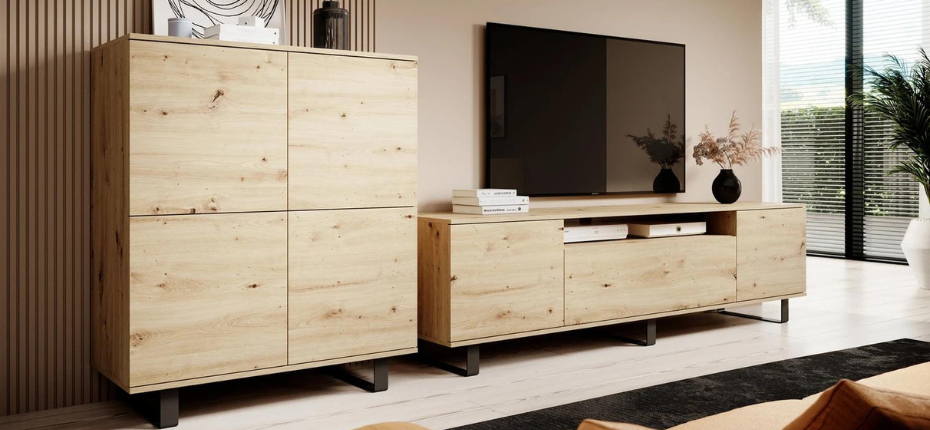 Pokud se podíváme na obývací stěny, najdeme světlé i tmavé typy, celodřevěné nebo kombinované se sklem. Klasická obývací stěna dnes zahrnuje jen televizní stolek, dvě skříňky a polici. Větší obývací stěny mohou mít o skříň a komodu navíc. Dá se ale najít i samostatný nábytek ve stejném dekoru, jako je vámi vybraná obývací stěna, a vy si tak můžete pořídit přesně takový nábytek, jaký do obýváku potřebujete.