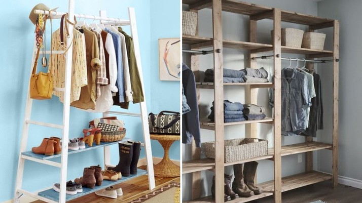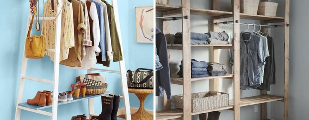 Ještě levnější je, pokud si takový systém sami vyrobíte. Netřeba na to nic extra. Můžete jej vyrobit z dřevěných prken, trubek nebo dřevěných přepravek i z žebříků a desek jako polic. Inspirace je mnoho, stačí si vybrat to, co sedí vašemu stylu.