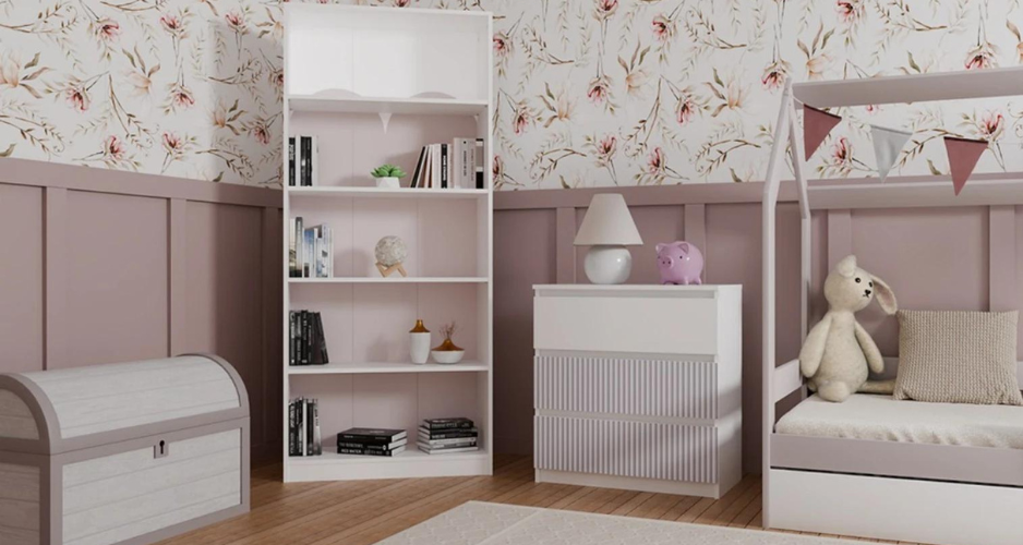 Dalším skvělým vybavením jsou dětské komody. Buď můžete koupit klasické obdélníkové barevné skříně se šuplíky, anebo komody ve tvaru domečku, kdy první část tvoří police s vrchní deskou ve tvaru střechy. Stejně tak jsou k dostání regály v takovém tvaru. Komoda umožní uložit věci i malým dětem, které zatím neumí naskládat oblečení do komínků a z polic jim vypadává. Díky komodám bude v pokoji pořádek.