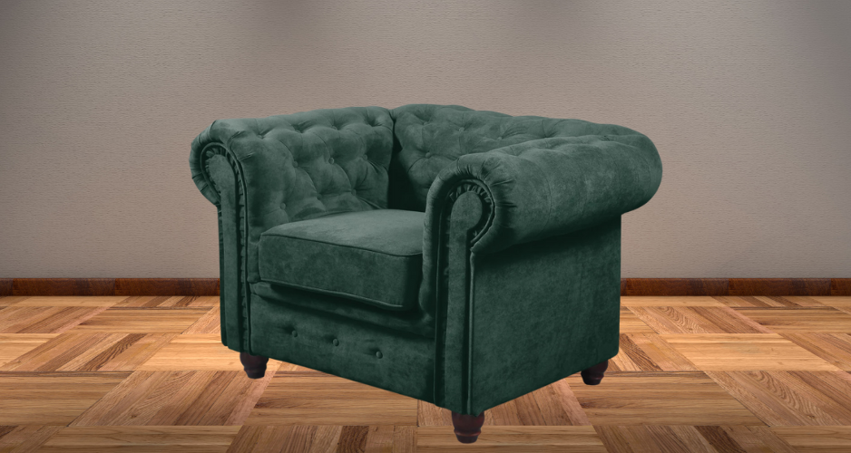 Chesterfield. Je pečlivě zpracované, polstrování je prošíváno decentně, ozdobou jsou zapuštěné