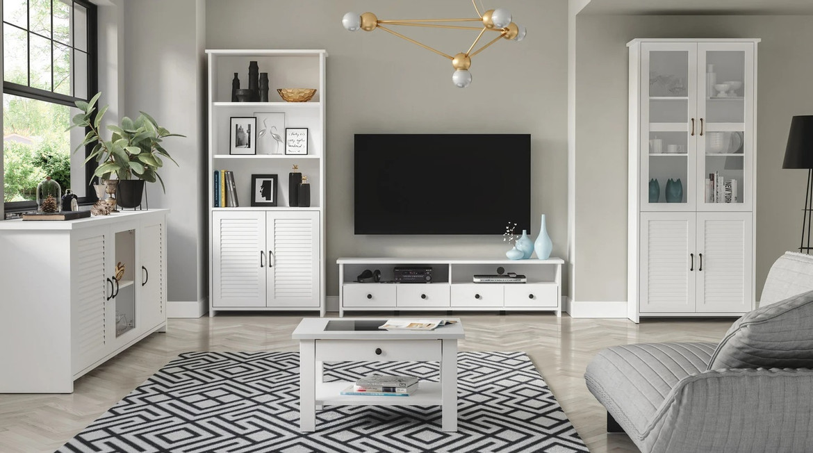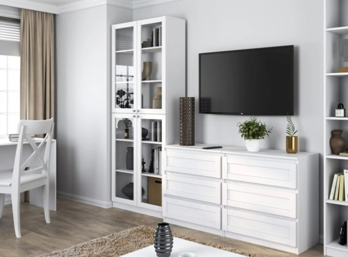 Vitríny s prosklenými dveřmi jsou zároveň velmi vzdušné, takže se hodí i do menších prostorů, které opticky zvětší, zvláště když se bude jednat o bílou vitrínu. Část může být uzavíratelná prosklenými dveřmi, spodní část může mít šuplíky, dva, tři, ale i jeden, podle toho, kolik jich chcete využívat.