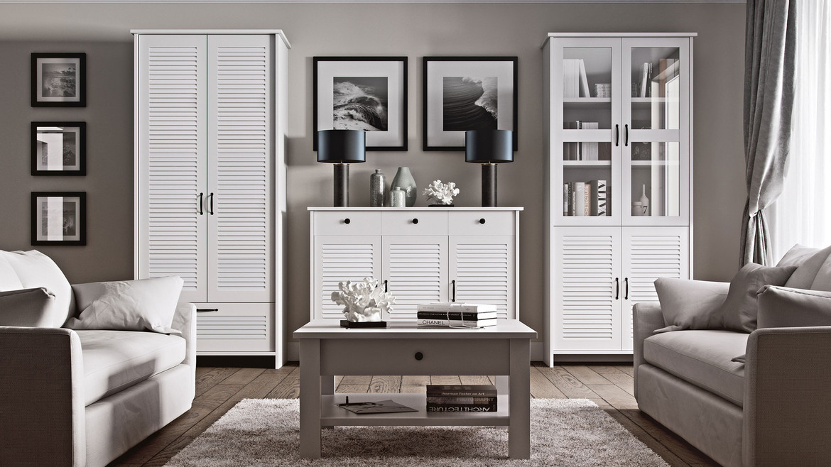 Jestliže máte menší obývací pokoj nebo ložnici, do nichž chcete obývací stěnu koupit, zvolte světlejší provedení. Bílé nebo smetanové provedení prostor opticky zvětší a rozzáří.