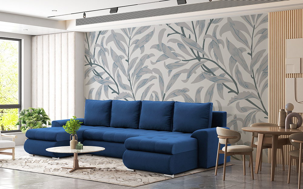 Naprosto moderně a luxusně působí velká rohová rozkládací sedací souprava v temně modré barvě, která má nastavitelné opěrky hlavy pro každého sedícího zvlášť. Jestliže chcete více nenápadný typ sedačky, zvolte jej v šedé barvě. Může být tmavá i světlejší, vždy se hodí do firemních prostorů, protože je decentním. Stejně tak se dobře kombinuje s dalším vybavením.