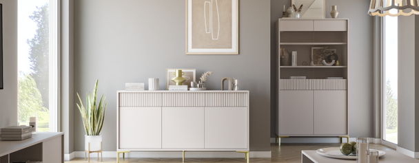 Podobně jako regály a knihovny, také vitríny plní estetický i praktický účel. Pojmou mnohé předměty, které chcete doma míst, nebo je potřebujete, a přitom je můžete dát na odiv. V případě, že chcete mít i soukromou část vitríny, vsaďte na kombinovaný model, kdy část vitríny tvoří skříňka s prosklenými dveřmi a část tvoří šuplíky nebo skříňka s plnými dvířky.