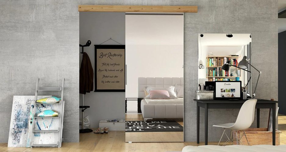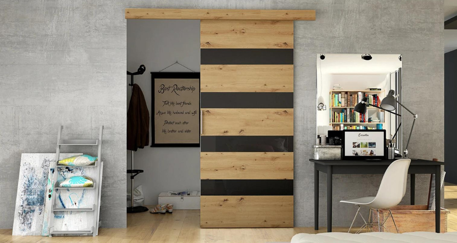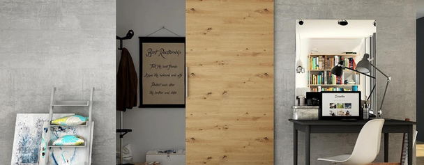 Kromě oddělení místností se dají posuvné dveře použít i např. jako dveře skříně nebo šatny. Tím, že se montují na zeď, vás nečekají složité stavební úpravy, jako při koupi dveří zajíždějících do stavebního pouzdra.