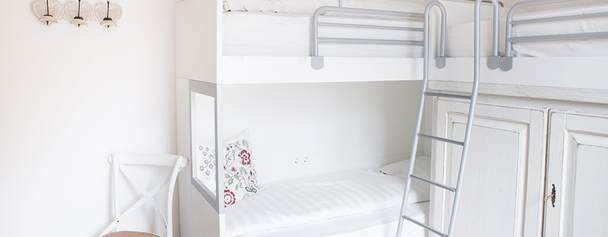 kombinovanou v barvě dřeva a bílé povrchové úpravy. Také patrové postele v bílém provedení jsou