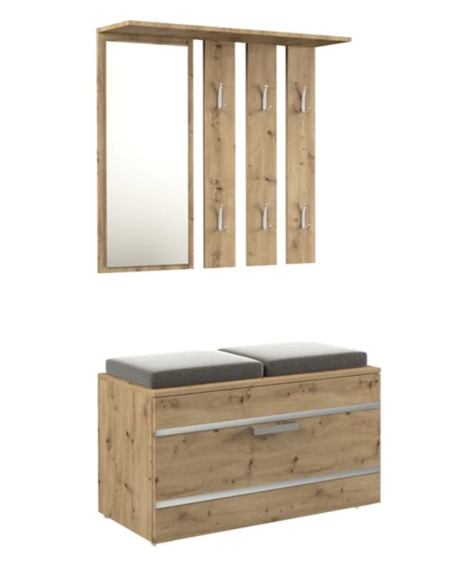 Velmi praktické jsou předsíňové stěny, které vám bez nutnosti přemýšlet zajistí všech v chodbě či hale potřebný nábytek najednou. Kupříkladu předsíňová stěna s botníkem Opal, kterou koupíte na SG-nabytek.cz, má moderní vzhled a její součástí je zrcadlo, věšáky i botník se sedací plochou. O něco jiná je předsíňová stěna Duo dub artisan. Její součástí je vysoká skříň, botník i zrcadlo, věšáky i polička. Další variantou je předsíňová stěna s botníkem a zrcadlem dub sonoma, která má zrcadlo, šuplík, poličku, botník a věšáky.