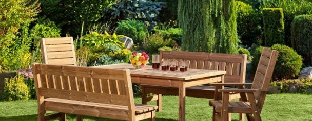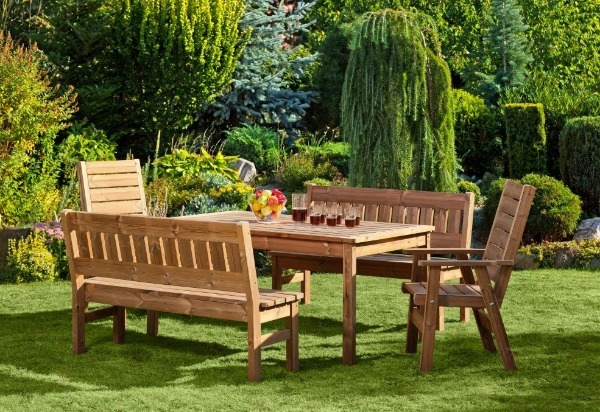 Díky tomu, že dřevo je materiál přírodní, žádným způsobem nenaruší vzhled zahrady. Kromě toho je příjemné na omak a nabízí dlouhou životnost. Záleží však na jeho druhu. Odolnější kousky se vyrábějí z dubu nebo buku. Smrk a modřín je varianta méně odolná. Z exotických dřevin se často používá teak nebo eukalyptus. Tyto druhy odolávají i dlouhodobému venkovnímu pobytu. Dřevěný nábytek je potřeba jednou za čas ošetřit vhodnými přípravky. Životnost zvýšíme tím, že budeme nábytek skladovat pod střechou. Pokud to nelze, alespoň jej zakryjeme plachtou.