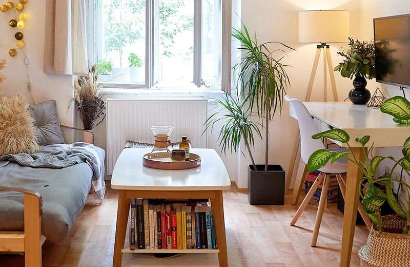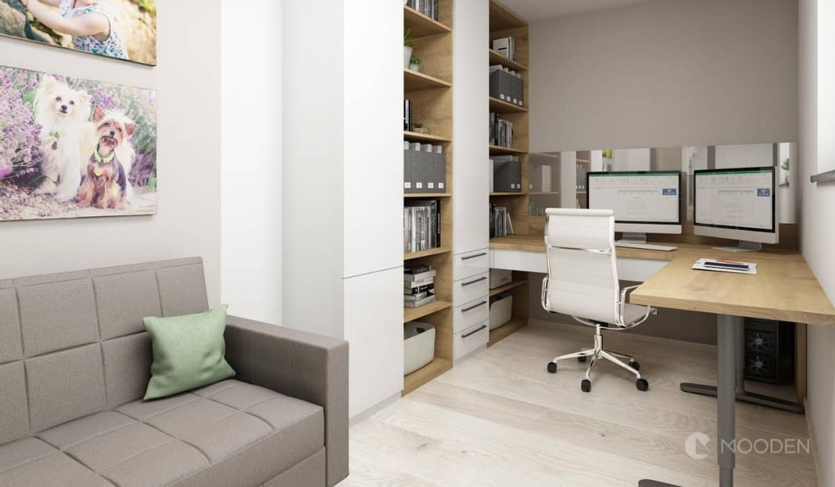 Velký úspěch co se týče zútulnění prostoru, mají stálozelené rostliny. Dají se koupit i naprosto nenáročné typy na údržbu a péči, a přitom jsou velmi hezké. Staré žaluzie, které jsou křivé, chybí jim díly nebo jsou oloupané, nahraďte novými, třeba látkovými svislými. Jimi se dá i opticky přepažit prostor např. v okamžicích, kdy máte hosty a chcete s nimi sedět na gauči u kávy, a nechcete, aby sledovali, co máte na pracovním stole a jinde.