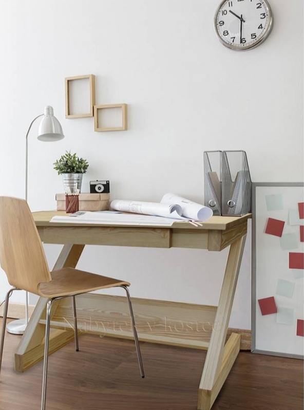 Praktické jsou psací stoly, které mají na jedné straně uzavíratelnou skříňku, a na druhé šuplíky.