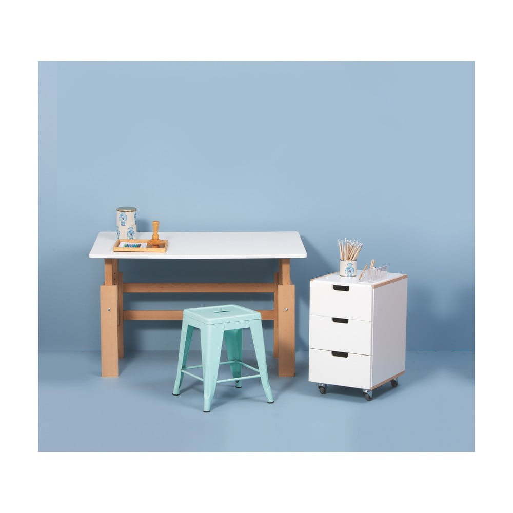 Dětem může zprvu stačit klasický psací stůl, u něhož není pod hlavní deskou vysouvací polička na klávesnici. První roky ve škole budou potřebovat hlavně dostatek prostoru na psaní a kreslení. Stejně tak je ale důležité mít šuplíky, skříňku a poličku. Existují praktické výsuvné kontejnery, které lze zasunout pod naprosto jednoduchý psací stůl a kdykoli si jej kdekoli přemístit díky kolečkům, které má.