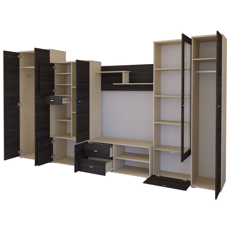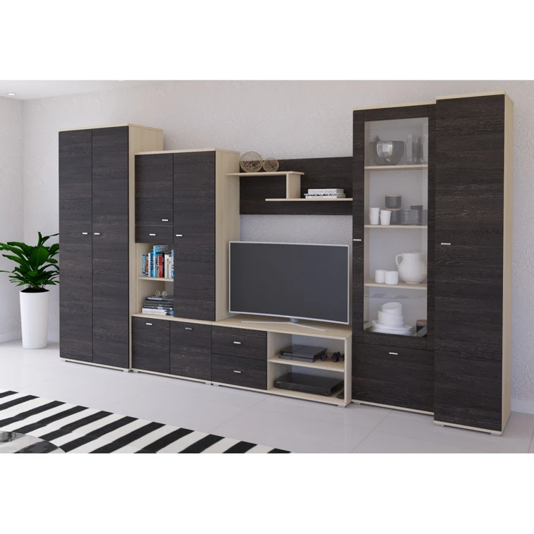 Obývací sestava Ars vyniká množstvím úložného prostoru. Šatní skříň obsahuje šatní tyč a 1x poličku. Vkusná kombinace dvou barev - Jasan / Dub canterbury, které rozzáří Váš domov .