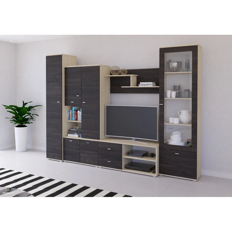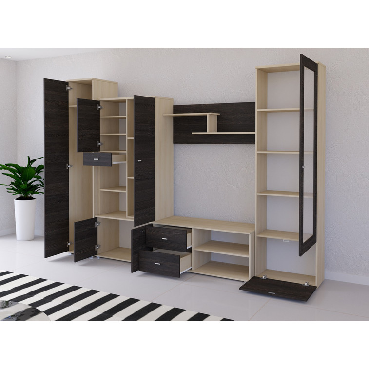 Obývací sestava Ars P vyniká množstvím úložného prostoru. Šatní skříň obsahuje šatní tyč a 1x poličku. Vkusná kombinace dvou barev - Jasan / Dub canterbury, které rozzáří Váš domov .