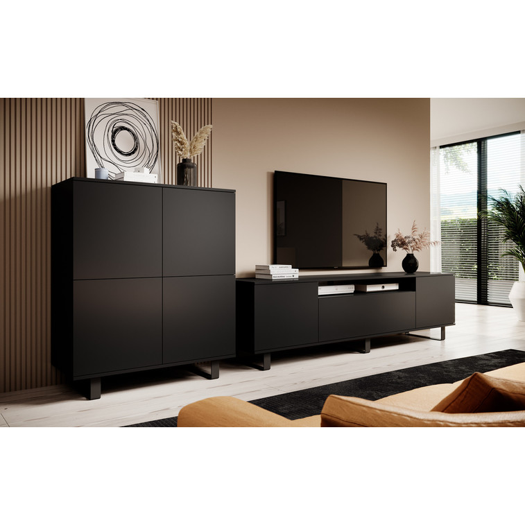 Obývací stěna Logan je příkladem moderní sestavy nábytku. Stěna je vyrobena z laminované desky se strukturou dřeva, která vypadá úžasně v každé místnosti. Jednotlivé části ze sestavy je možné umístit samostatně přesně tak, aby se stěna přizpůsobila Vaší místnosti a stala se funkční. Otevírání v systému "PUSH TO OPEN" - komoda je vybavena mechanismem, který po lehkém stlačení dvířka otevře, vysoká kvalita. Komodu i TV stolek lze postavit i bez kovové podnože, nebo zavěsit na stěnu.