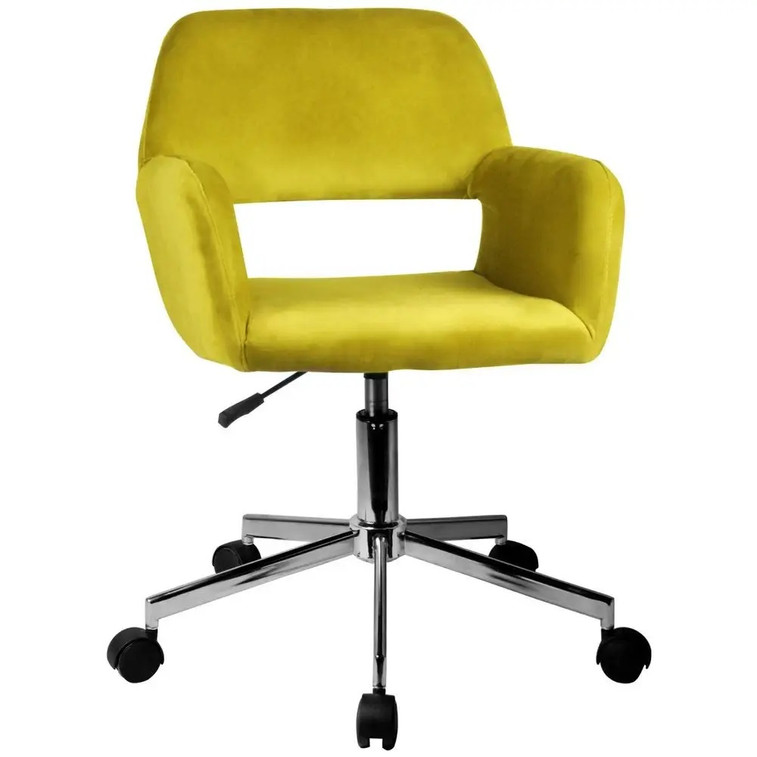 Otočná židle FD-22 má otočné sedadlo, které bude ergonomické, praktické a pohodlné při mnohahodinovém sezení u stolu. Svědčí o tom promyšlená funkčnost, kterou je jeho mobilita. Má možnost otáčení pohybu na kolečkách a snadné nastavení výšky. Velurové čalounění je navíc pohodlné a snadné na každodenní údržbu. Eleganci kromě stylové opěrky doplňuje pevná, ocelová, chromovaná noha. Tento typ křesel lze použít jak ve standardních kancelářských prostorách, tak v obytných prostorách přizpůsobených potřebám práce na dálku.