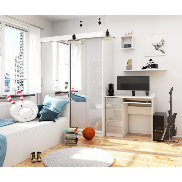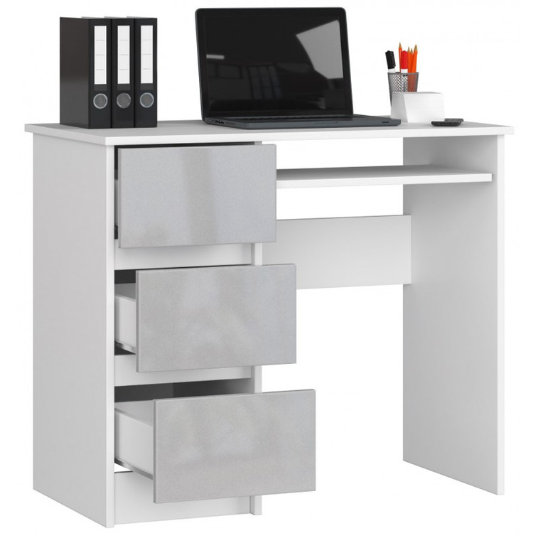 Počítačový stůl A-6 levá bílá/metalic lesk