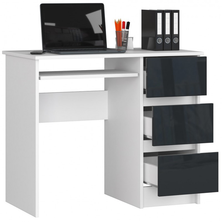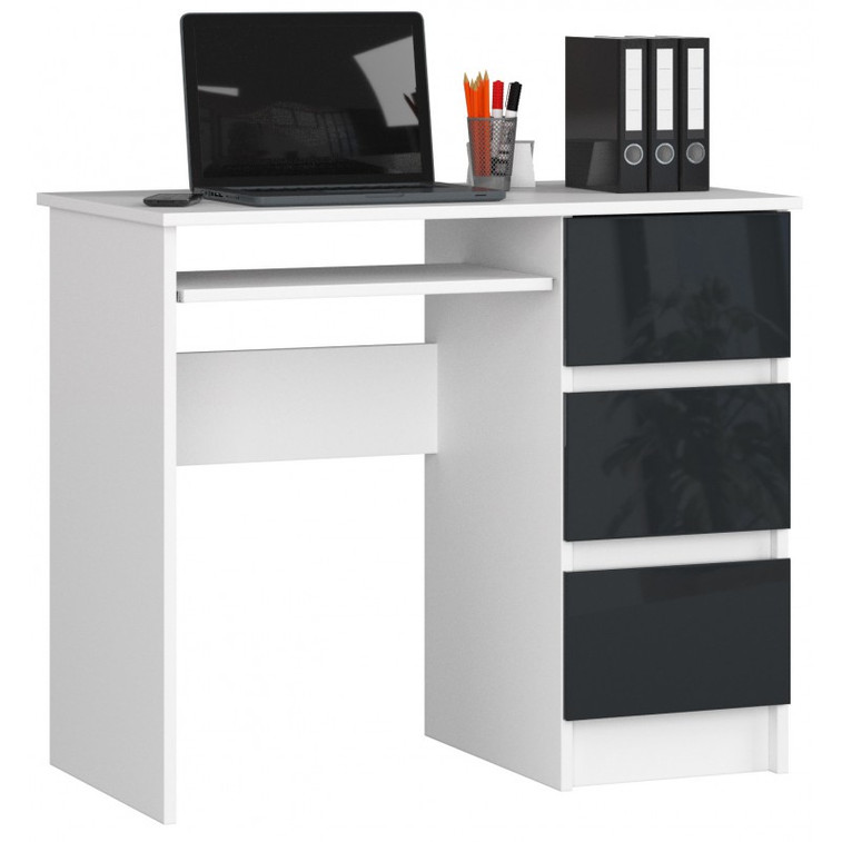 Počítačový stůl A-6 pravá bílá/grafit lesk