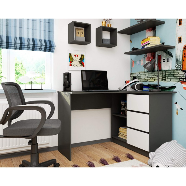 Počítačový stůl B16 CLP, pravá, šedá/bílá.