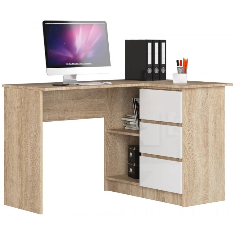 Počítačový stůl B16 pravá dub sonoma/bílá lesk