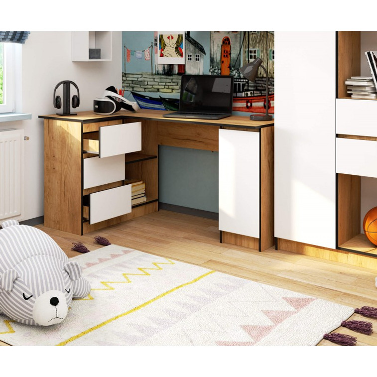 Počítačový stůl B20 CLP, levá, řemeslný dub/bílá.