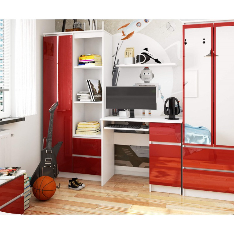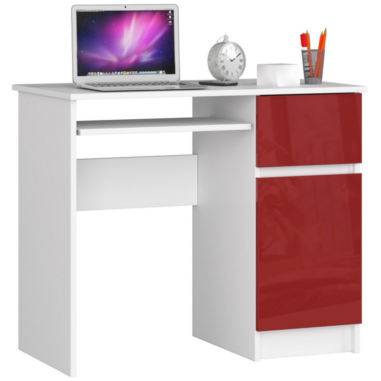 Počítačový stůl PIKSEL pravá bílá/červená lesk