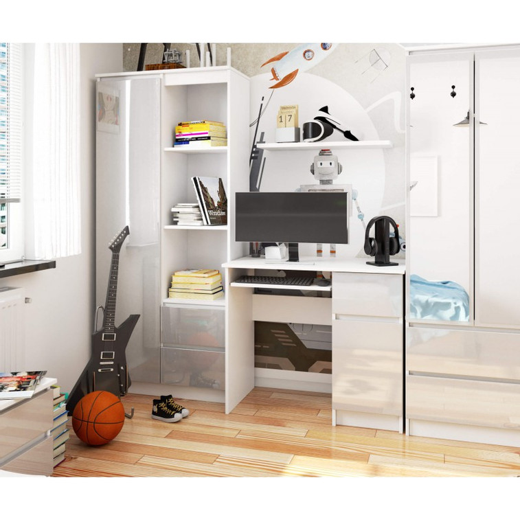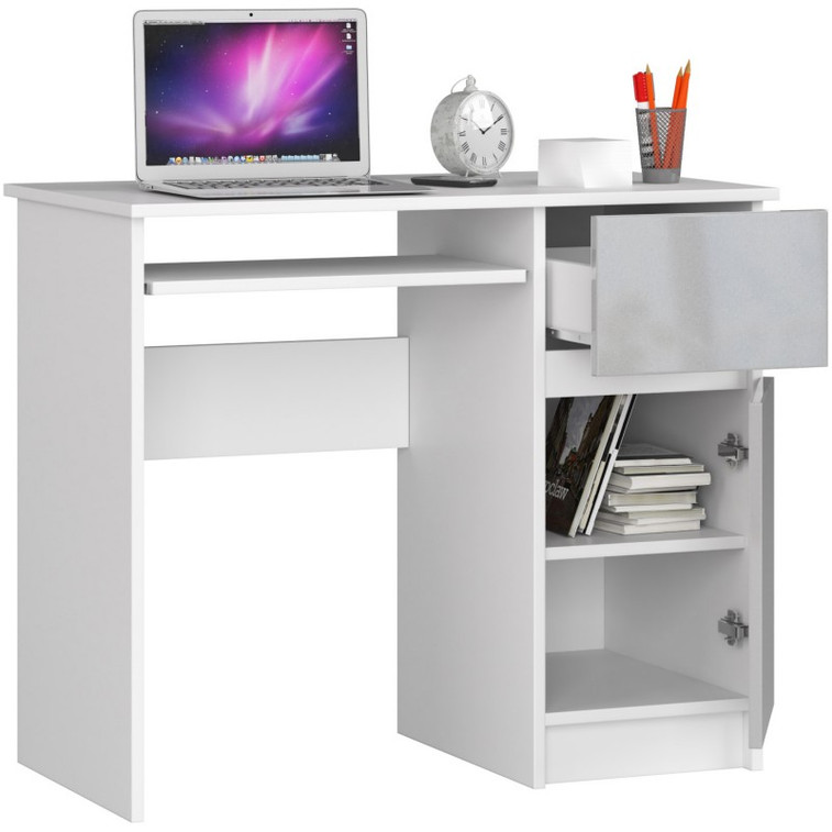 Počítačový stůl PIKSEL pravá bílá/metalic lesk