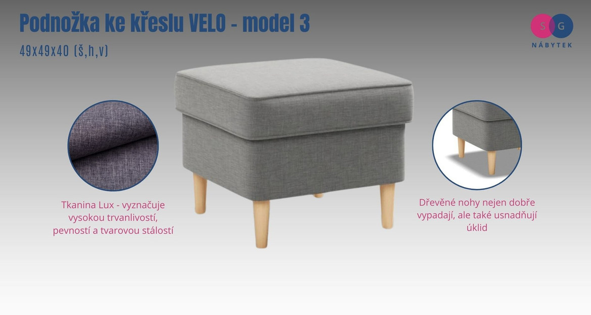 Podnožka je vyrobena z pevných, vysoce kvalitních materiálů. Nohy jsou vyrobeny ze dřeva.