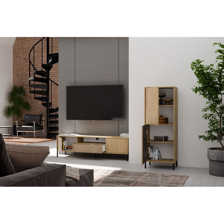 Tento regál je moderní a funkční kus nábytku, který skvěle poslouží v obývacím pokoji, pokoji pro hosty, ložnici nebo pracovně. Nabízí ještě více úložného prostoru při zachování elegantního charakteru. Kombinace dvířek s hladkým čelem a dvířek s drážkovanou úpravou dodává stylový kontrast a systém TIP-ON umožňuje pohodlné otevírání bez úchytek.