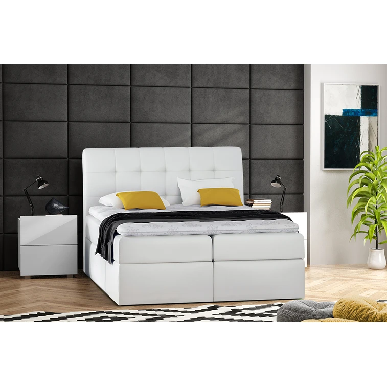 Postel 50 VERMONT 140x200 cm s úložným prostorem Bílá eko-kůže