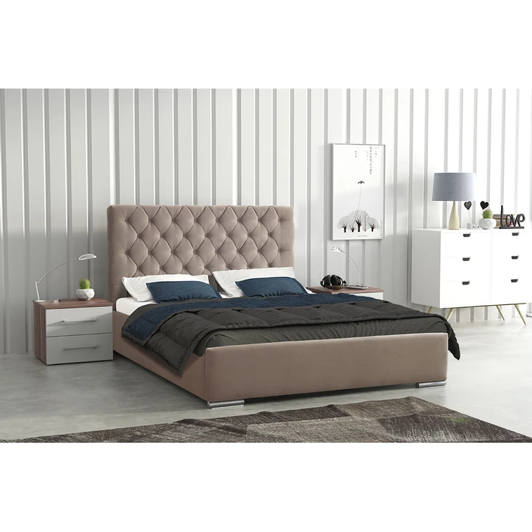 Moderní čalouněná postel Ryan 06 vám poskytne pohodlné spaní. Elegance, jednoduchost a styl jsou hlavními výhodami těchto nadčasových čalouněných postelí. Vysoké čelo poskytuje výbornou podporu pro záda vsedě, což oceníte při čtení knih nebo sledování televize.