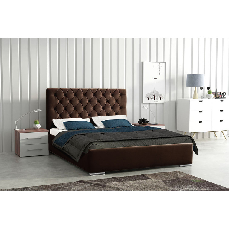 Moderní čalouněná postel Ryan 06 vám poskytne pohodlné spaní. Elegance, jednoduchost a styl jsou hlavními výhodami těchto nadčasových čalouněných postelí. Vysoké čelo poskytuje výbornou podporu pro záda vsedě, což oceníte při čtení knih nebo sledování televize.