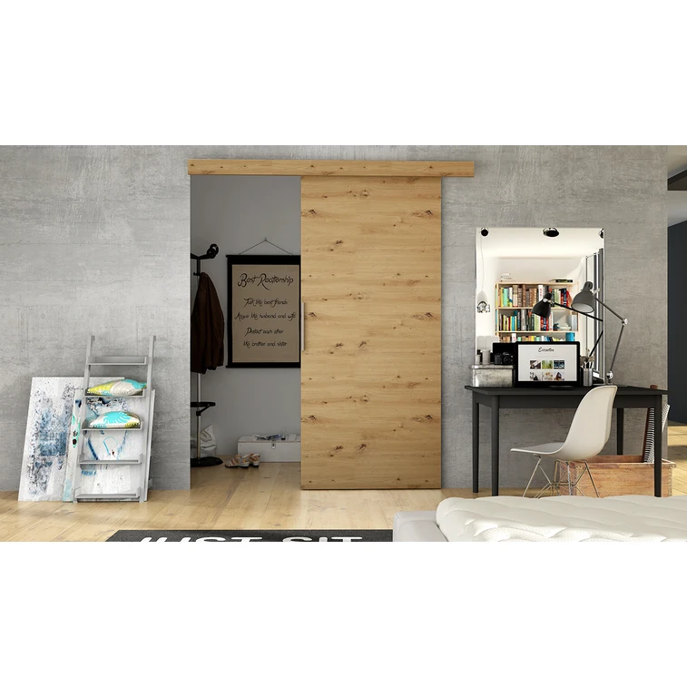 Posuvné dveře RUBI I. Pokud chcete ideálně využít prostor vašeho bytu, posuvné dveře jsou ideálním řešením. Můžete je využít jako oddělení dvou místností, nebo jako dveře do skříně či šatny. Možnost namontovat na pravou i levou stranu. Dveře mají pevné hliníkové madlo.