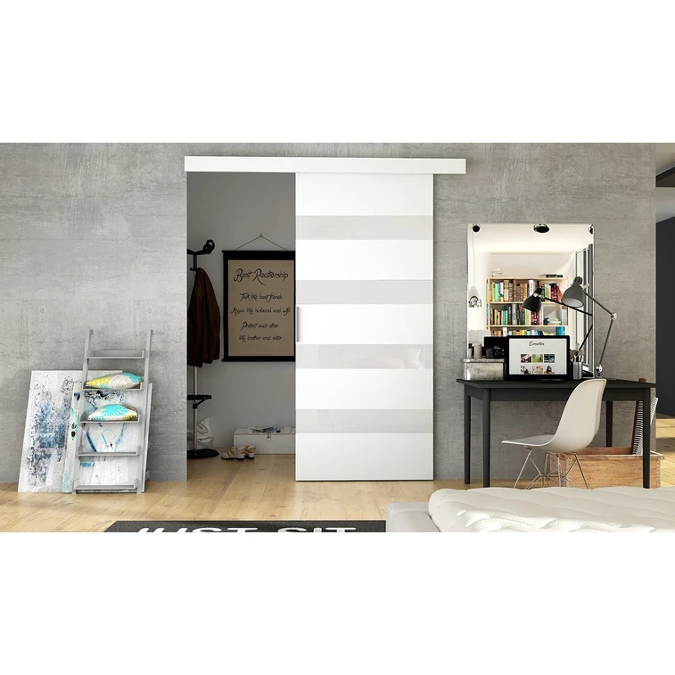 Posuvné dveře RUBI V. Pokud chcete ideálně využít prostor vašeho bytu, posuvné dveře jsou ideálním řešením. Můžete je využít jako oddělení dvou místností, nebo jako dveře do skříně či šatny. Možnost namontovat na pravou i levou stranu. Dveře mají pevné hliníkové madlo.