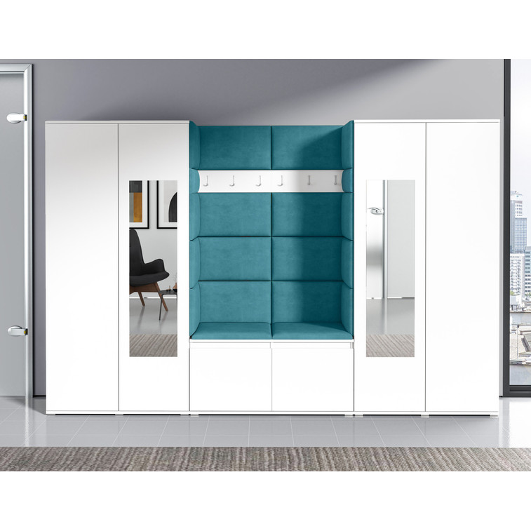 Předsíňová stěna AMI 10 Azurová Bílá Se zrcadlem