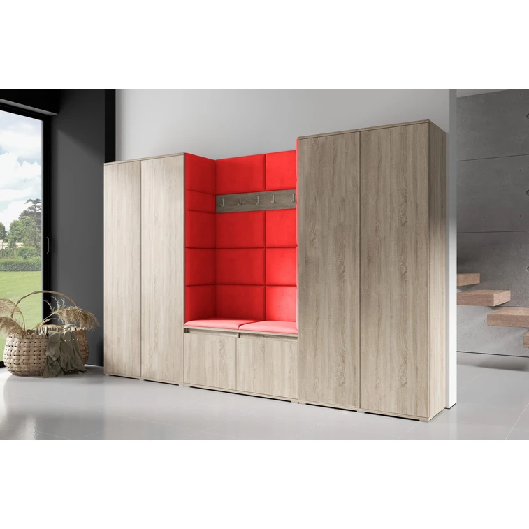Předsíňová stěna AMI 10 Červená Dub sonoma Bez zrcadla