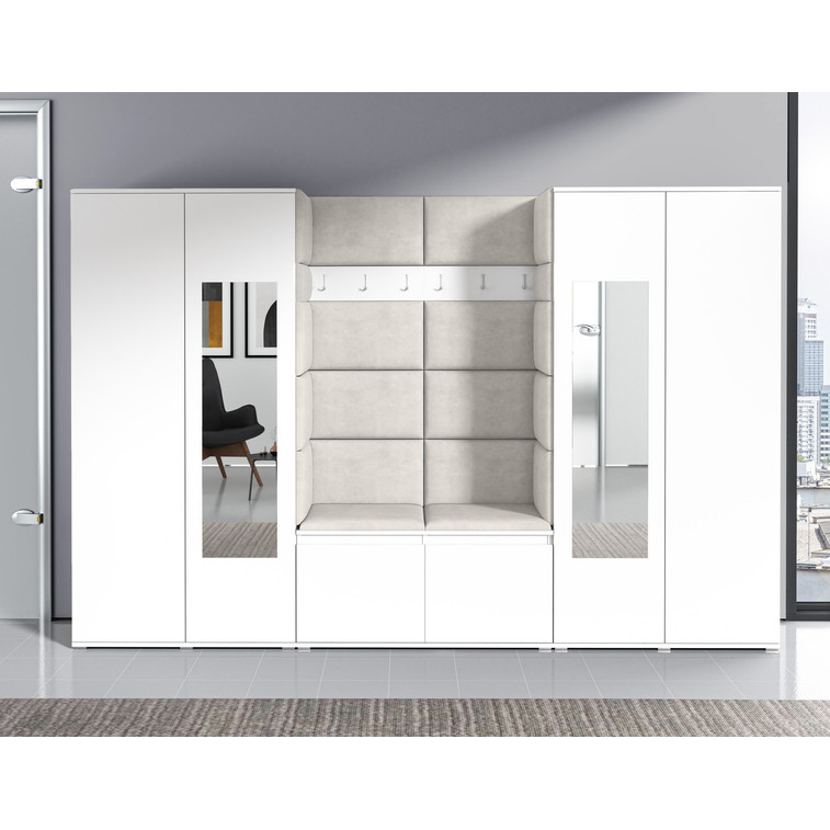 Předsíňová stěna AMI 10 Krémová Bílá Se zrcadlem